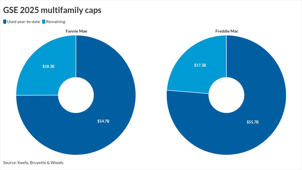 U.S. Federal Housing is increasing the multifamily caps at Fannie Mae and Freddie Mac for 2026 by over 20% compared to this year, a level which keeps pace with volume growth in recent months, observers said.