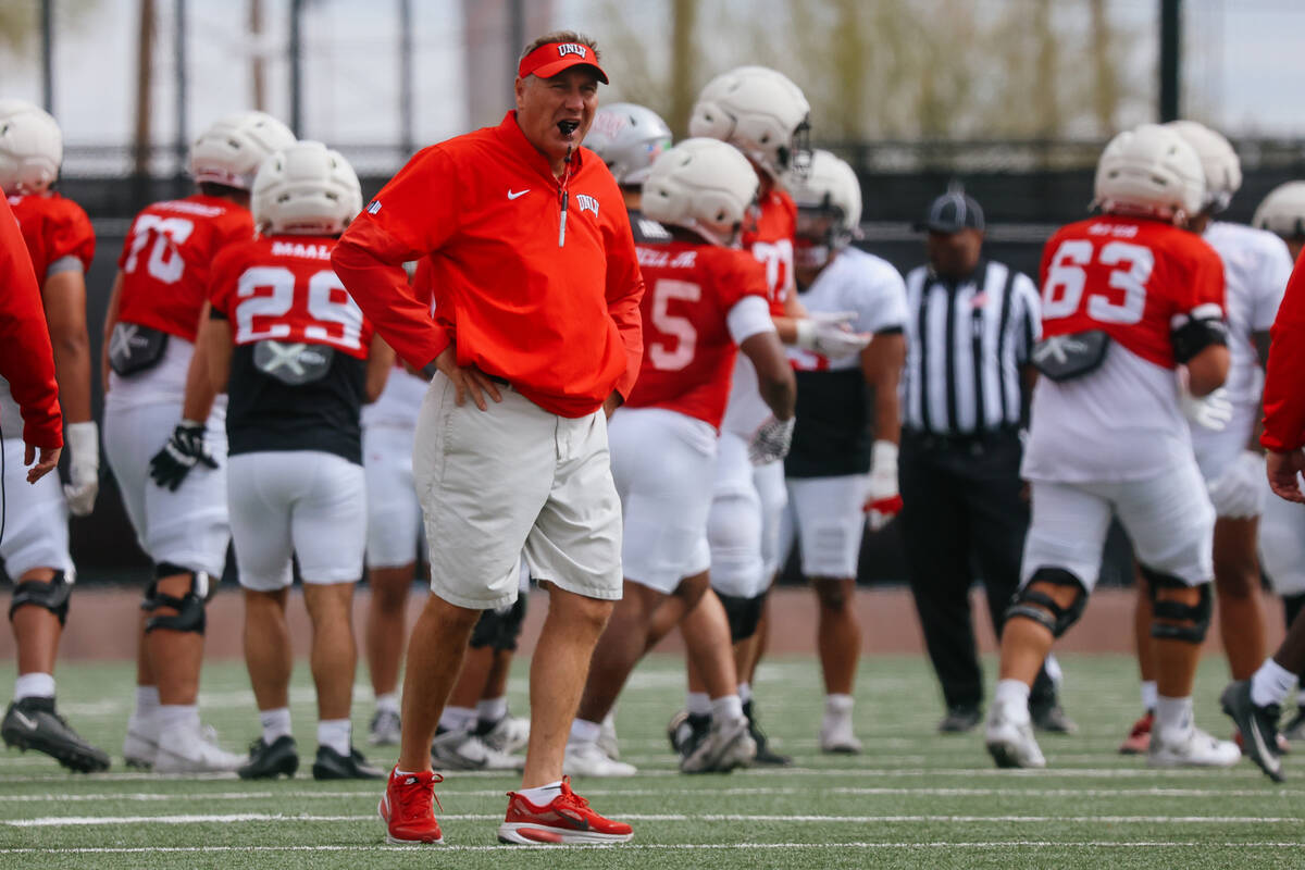 Mullen’s team ended its second spring practice under him as coach on Saturday at Rebel Park, undoubtedly well ahead of where UNLV was at this time last year.