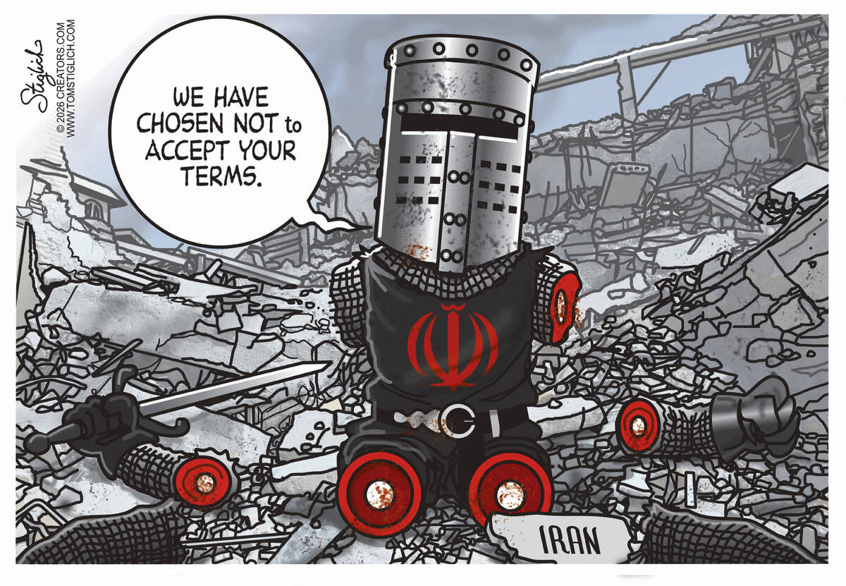 Take a look at some editorial cartoons from across the U.S. and world. 0 comment 0 FacebookTwitterPinterestEmail Tom Stiglich8194Creators Syndicate previous post Without MVP, Chennedy Carter leads as Aces beat Team Japan to open WNBA preseason action next post CARTOON: In a tight spot You may also like EDITORIAL: Time for politicians to bring down the temperature April 27, 2026 LETTER: Trump’s tax cuts and tariffs April 27, 2026 CARTOON: In a tight spot April 27, 2026 Without MVP, Chennedy Carter leads as Aces beat Team Japan to open WNBA preseason... April 27, 2026 Ruby Duncan, champion of state’s poor, dies at age 93 April 26, 2026 Cortes’ triple, Sterner’s clutch pitching lift Athletics back into first place April 26, 2026 Golden Knights’ Tortorella changing lines, power play for Game 4 April 26, 2026 Former Knights defenseman a veteran presence for young Mammoth April 26, 2026 MGM Grand addresses WrestleMania security concerns after fan altercations April 26, 2026 Start time announced for Game 4 between Golden Knights and Mammoth April 26, 2026 Leave a Comment Cancel ReplyYou must be logged in to post a comment.
