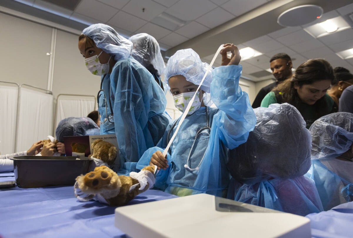 Dressed in surgical gowns, hair nets and face masks, kids at Southern Hills Hospital and Medical Center filed one by one into a room where they were ready to treat their patients: sick teddy bears.